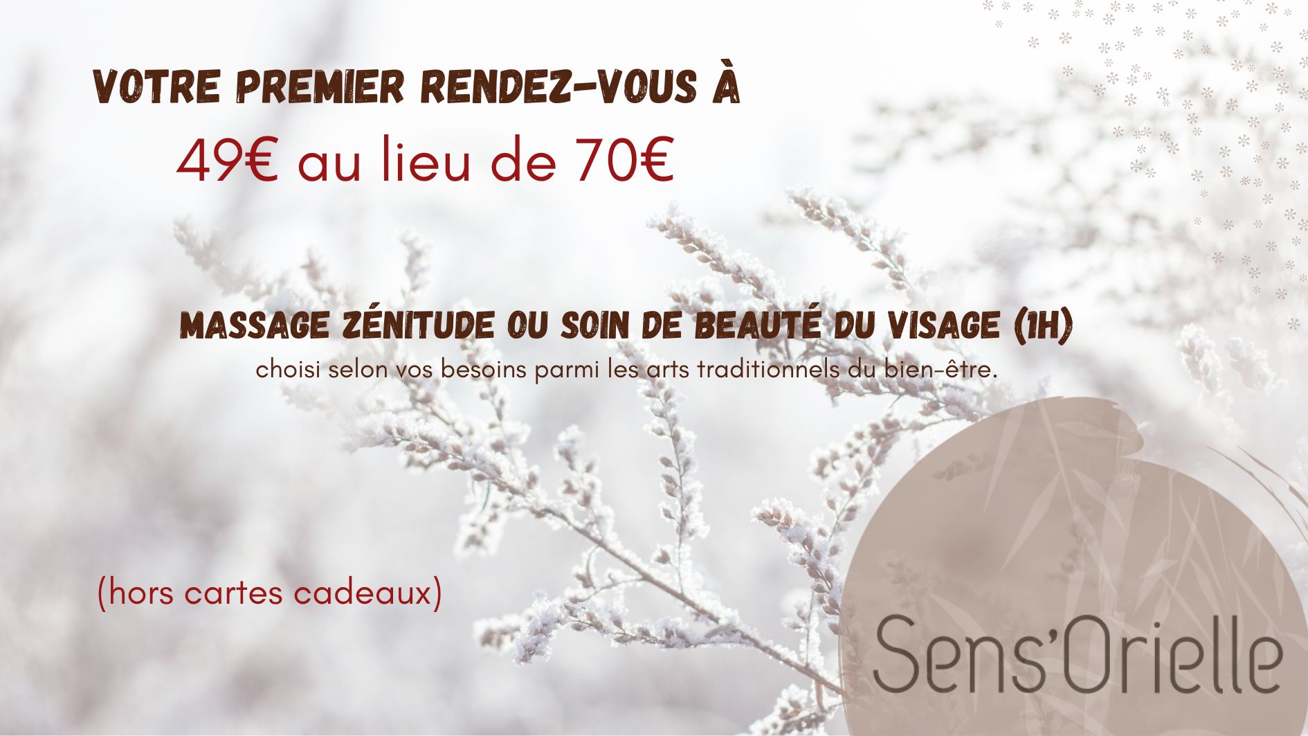 Votre massage Zénitude ou votre soin visage (1h) à 49€ au lieu de 70€(hors cartes cadeaux)
